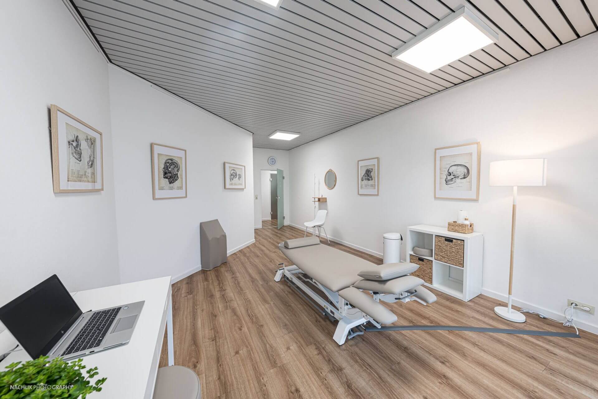 Innenaufnahmen dokumentieren Empfangsbereich, Wartezone und Behandlungsräume. Dabei habe ich auf Perspektiven gesetzt, die den Raum optisch öffnen und die angenehme Farbgestaltung hervorheben.